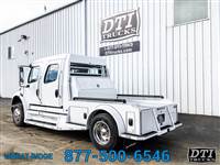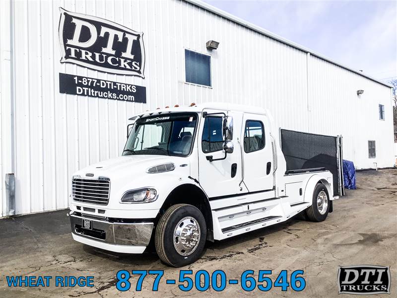 2023 SportChassis LH5 Powertrain, Axle, Suspension & Equipment: Cummins L9 360hp Diesel Engine, Allison 6 Speed Transmission - TRV Series 3200, BOSCH hydraulic brake package, Wabco 4S/4M anti-lock brake system, 10,000 lb single front axle, 10,000 lb taper leaf front suspension, ?Gross vehicle weight rating 19,500lb, No CDL Required, 17,500lb L-Series single rear axle, 4.88 axle ratio, Airliner 11,500lb SportChassis recreational vehicle rear air-suspension, Manual dump switch for air suspension with autofill override valve, Single rear suspension leveling valve w/ping tank, 150 gallon fuel storage, 22.5X8.25 ATX Series aluminum wheels, 255/80R22.5 Michelin tires Cab Exterior: Aircraft grade aluminum body, SportChassis Ride Enhancement Package, Air-ride cab and rear suspension with manual dump switch, Power adjust heated mirrors with wide angle spot mirrors, Rear A/C and heat, Integrated air supply, Sealed storage compartments, additonal bed storage compartment, LED headlights, L.E.D. perimeter and accessory lighting, Protective bed rail, 7-pin trailer harness connector, 2" 5/16 Gooseneck hitch, Class V trailer hitch receiver, Dual 26" Air Horns Cab Interior: Spacious luxury class crew cab, Back Up Camera observation system, Leather wrapped steering wheel, Air-ride premium Leather seating, Lay down rear sofa, Marine grade carpet and protective floor mats , USB power ports 115-volt power outlet, Power window and door lock controls, Keyless entry, Navigation, Smart connect touch screen stereo, Kicker audio, Multi-media entertainment system with device integration. This SportChassis LH5 truck is the perfect hauler to handle some serious weight with ease, and covered by factory warranty. Call Austin at 720-365-4115 |