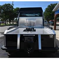 Aluminum bed with LED tail lights and load lights in headache rack