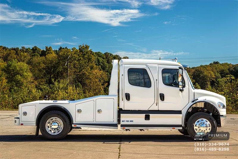 2022 FREIGHTLINER M2-106 LUXE HAULER Priced at $175,000 Call Alex (816) 489-8298 FOR MORE INFO Located at Premium and Exotic Wholesale, Bloomington, Indiana ONLY 24K VERIFIED ORIGINAL MILES ONE OWNER TRUCK IN SIMPLY STUNNING CONDITION ISL 8.9L CUMMINS MOTOR 350 HORSEPOWER / 1050 TORQUE ALLISON 6 SPEED PUSH BUTTON AUTOMATIC EXCELLENT CONDITION TIRES EXTREMELY CUSTOM LUXE BUILT HAULER TRUCK FROM NEW FULLY LOADED WITH ALL FEATURES CUSTOM DIAMOND TUCK LEATHER INTERIOR ULTRA CLEAN WHITE EXTERIOR STORED INDOORS ITS WHOLE LIFE AIR RIDE CAPTAINS CHAIRS UP FRONT REAR SEAT FOLDS DOWN TO MAKE BED USB / 110V / LIGHTER CHARGER PORTS BACK UP CAMERA ON BOTH HITCH LOCATIONS UNDER CDL WEIGHT GVWR AIR RIDE CAB, AIR RIDE SEAT, AIR RIDE REAR SUSPENSION, AIR BRAKES DPF AND DEF - FULLY CALIFORNIA COMPLIANT CURRENTLY SET UP FOR 5TH WHEEL HAULING CAN SET UP FOR AIR RIDE GOOSENECK HAULING FOR $199 This is factory built 2022 M2-106 LUXE hauler truck with all the right options & CUMMINS power that will cost you ~$300k to buy new!! This example has the highly desirable 8.9 Cummins 360HP motor paired with the legendary Allison 3060 transmission- and this has DEF and up to date emissions so its fully California compliant! At just 24K original miles – this truck is one of a kind and in absolutely fantastic overall condition for the age and miles and is ready to haul. One of the nicest things about this truck compared to other similar trucks is this one is equipped with the most desirable driveline, plush Diamond tuck leather interior seats and it runs and drives just like it did when new! The truck has been extremely well cared for and it shows spending its life hauling an RV and being stored in a climate controlled garage when not in use!! This hauler truck is equipped with a bed that is loaded with power lockable storage solutions and looks amazing going down the road. The CUMMINS emissions trucks are some of the most desirable trucks available, as they are known for their fantastic power & reliability good for around a million miles. This truck has a clean title, and will allow you to get into an up to date, modern truck for a fraction of the cost of a new one!! The original owners no longer have a need for this truck so its now available to go to a new home, where you can continue the high level of care taken with ownership of this truck! With a large 100+ gallon fuel capacity, you don’t have to worry about the constant fuel stops with your trailer hooked up! Mechanically everything on the truck works exactly as it should and the truck looks and drives fantastic. There may be a few very minor paint blemishes / stone chips as would be expected for a 24k mile truck. You will find it very difficult to find such a nice completely customized truck with these options anywhere in the nation at this price!! This truck runs and drives perfectly down the road, and is priced to move. This truck is for those who want the best available hauler truck on the market in as new condition, for a fraction of the cost....Save tens of thousands...Don’t miss out on this beautiful LUXE Hauler Truck Offered by Premium and Exotic Wholesale VIN: 1FVACXFE1NHNU3426 PRICED AT: $175,000 Call Alex (816) 489-8298 FOR MORE INFO We work hard and do what we can to ensure the information in each listing is accurate and up to date but we do not in any way guarantee this. Please confirm with one of our sales team any specific questions you may have prior to purchase. |